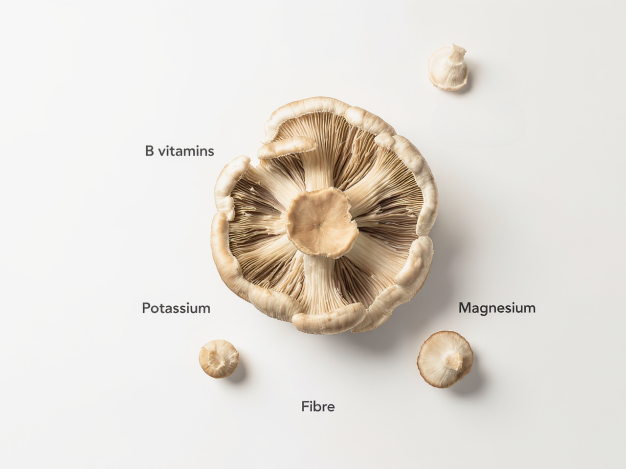 High in fiber, B-vitamins, potassium, and magnesium, oyster mushrooms support daily wellness (Li et al., 2024, PMC10824988).